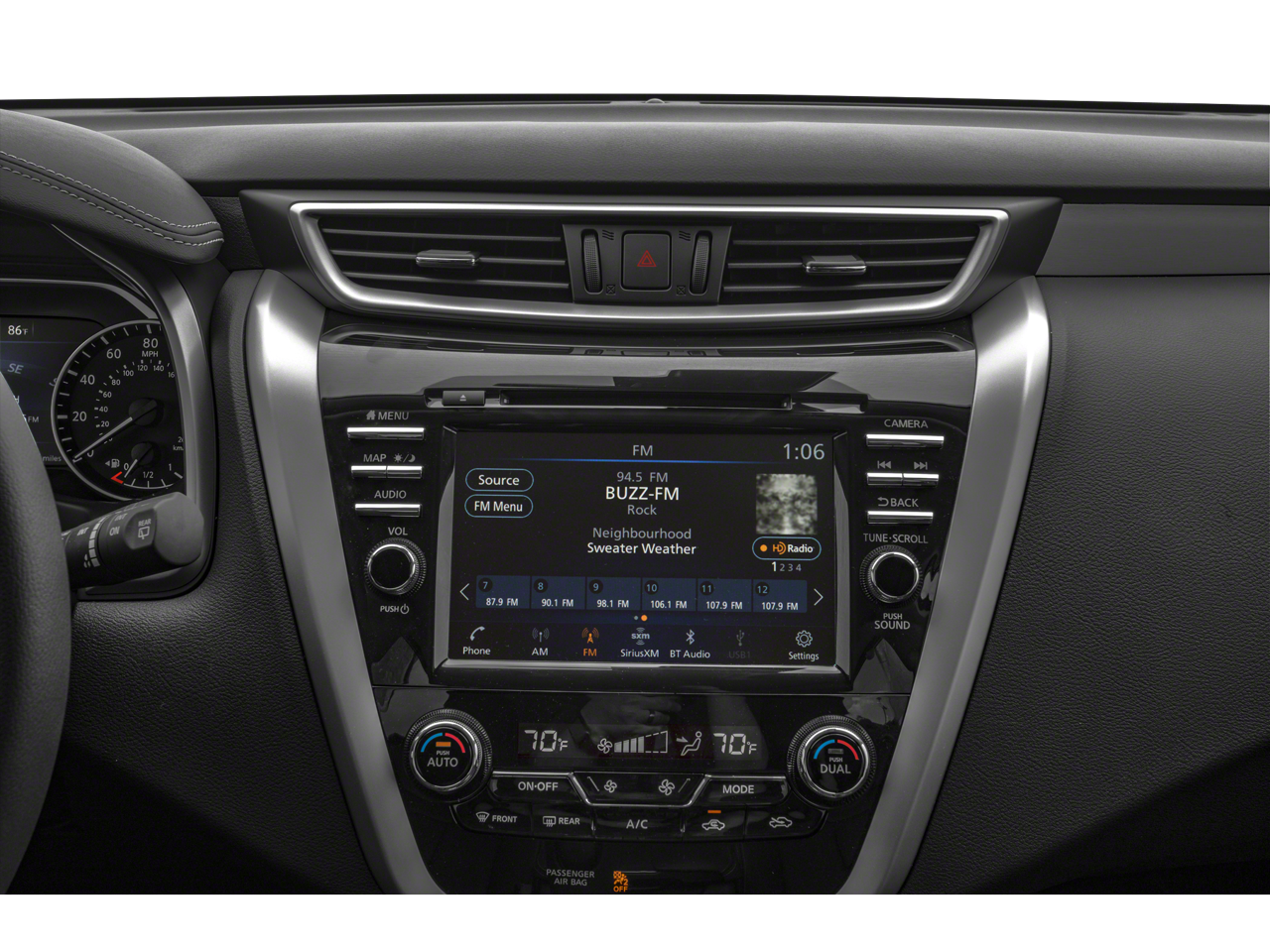 - Radio: AM/FM/CD/MP3/WMA Audio System -inc: Bose audio system w/11 speakers plus dual subwoofer, NissanConnect w/navigation featuring Apple CarPlay and Android Auto, Nissan door to door navigation w/3D building graphics and satellite imagery, connected navigation features including online POI search, door-to-door and online premium traffic information, HD Radio, SiriusXM Travel Link (weather, fuel prices, movie listings, stock info, sports and parking), SiriusXM Traffic, auxiliary audio input jack, SiriusXM satellite radio, 8" color display w/multi-touch control, 2 front illuminated USB connection ports (1 type-A, 1 type-C) for iPod interface and other compatible devices, Bluetooth® hands-free phone system, streaming audio via Bluetooth®, hands-free text-messaging assistant and 2 rear illuminated USB charge ports (1 type-A, 1 type-C)