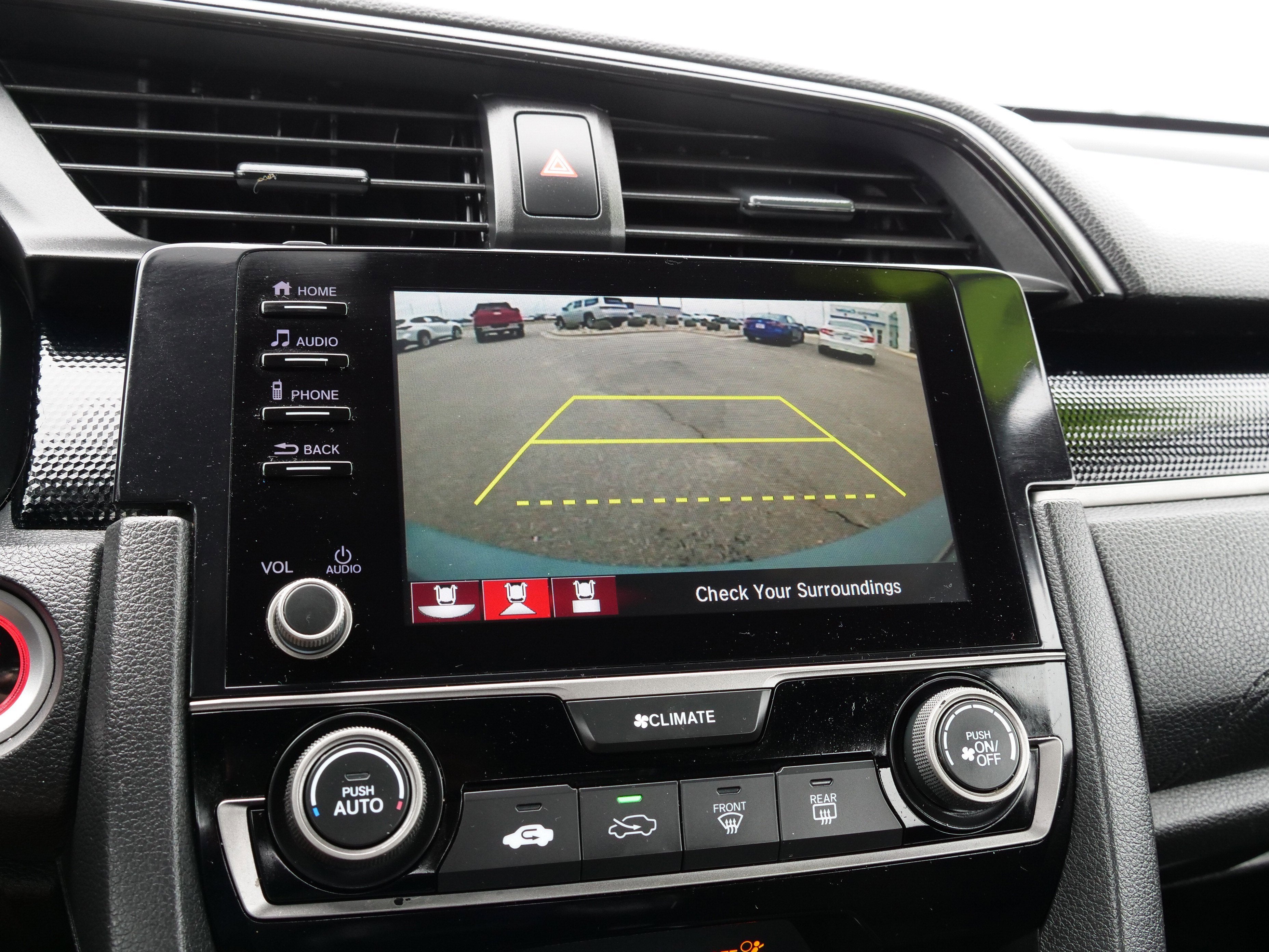 Polished Metal Metallic 2020 Honda Civic Sport 1.5L I4 DOHC 16V CVT FWD Black Cloth, 18 Alloy Wheels, 4 Speakers, 4-Wheel Disc Brakes, ABS brakes, Adaptive Cruise Control: Adaptive Cruise Control (ACC) with Low-Speed Follow, Air Conditioning, Alloy wheels, AM/FM radio, Apple CarPlay/Android Auto, Auto High-beam Headlights, Automatic temperature control, Brake assist, Bumpers: body-color, Delay-off headlights, Driver door bin, Driver vanity mirror, Dual front impact airbags, Dual front side impact airbags, Electronic Stability Control, Emergency communication system: HondaLink, Exterior Parking Camera Rear, Fabric Seating Surfaces, Forward collision: Collision Mitigation Braking System (CMBS) + FCW mitigation, Four wheel independent suspension, Front anti-roll bar, Front Bucket Seats, Front Center Armrest, Front fog lights, Front reading lights, Fully automatic headlights, Illuminated entry, Lane departure: Lane Keeping Assist System (LKAS) active, Leather Shift Knob, Low tire pressure warning, Occupant sensing airbag, Outside temperature display, Overhead airbag, Panic alarm, Passenger door bin, Passenger vanity mirror, Power door mirrors, Power steering, Power windows, Radio data system, Radio: 160-Watt Audio System, Rear anti-roll bar, Rear seat center armrest, Rear window defroster, Rear window wiper, Reclining Front Bucket Seats, Remote keyless entry, Security system, Speed control, Speed-sensing steering, Split folding rear seat, Spoiler, Steering wheel mounted audio controls, Tachometer, Telescoping steering wheel, Tilt steering wheel, Traction control, and Trip computer.29/35 City/Highway MPG