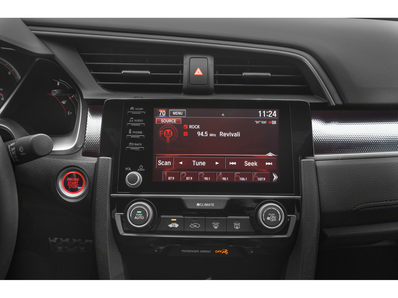 - Radio: 180-Watt AM/FM Audio System -inc: 8 speakers, 7-inch display w/high-resolution electrostatic touch-screen, knob and hard keys for primary controls, customizable feature settings, Bluetooth HandsFreeLink, Bluetooth streaming audio, radio data system (RDS), speed-sensitive volume compensation (SVC), 1.5-amp USB smartphone/audio interface in front console, 1.0-amp USB audio interface port in center console, HondaLink, Apple CarPlay integration, Android Auto integration, SMS text message function and illuminated steering wheel-mounted controls