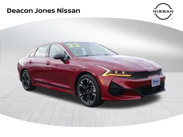 Passion Red 2022 Kia K5 GT-Line I4 8-Speed Automatic AWD GT-Line AWD Premium Package (Heated Steering Wheel, LED Interior Lighting, LED Projection Headlights, Navigation-Based Smart Cruise Control - Curve, Panoramic Sunroof, and Smart Cruise Control w/Stop & Go), 4-Wheel Disc Brakes, 6 Speakers, ABS brakes, Air Conditioning, Alloy wheels, AM/FM radio: SiriusXM, Apple CarPlay & Android Auto, Auto High-beam Headlights, Automatic temperature control, Brake assist, Bumpers: body-color, Cargo Net, Carpeted Floor Mats, Cloth/Leatherette Seat Trim, Delay-off headlights, Driver door bin, Driver vanity mirror, Dual front impact airbags, Dual front side impact airbags, Electronic Stability Control, Four wheel independent suspension, Front anti-roll bar, Front Bucket Seats, Front Center Armrest, Front dual zone A/C, Front fog lights, Front reading lights, Fully automatic headlights, Heated door mirrors, Heated Front Bucket Seats, Heated front seats, Illuminated entry, Knee airbag, Low tire pressure warning, Navigation System, Occupant sensing airbag, Outside temperature display, Overhead airbag, Overhead console, Panic alarm, Passenger door bin, Passenger vanity mirror, Power door mirrors, Power driver seat, Power steering, Power windows, Radio data system, Radio: AM/FM/MP3 Audio System, Rear anti-roll bar, Rear seat center armrest, Rear side impact airbag, Rear window defroster, Remote keyless entry, Security system, Speed control, Speed-sensing steering, Split folding rear seat, Spoiler, Sport steering wheel, Steering wheel mounted audio controls, Tachometer, Telescoping steering wheel, Tilt steering wheel, Traction control, Trip computer, Turn signal indicator mirrors, Variably intermittent wipers, and Wheels: 7.5J x 18 Gloss Black Machined Finish Alloy.Recent Arrival! 25/33 City/Highway MPGDeacon Jones has been PROUDLY Providing only the BEST Pre-Owned Vehicles from Goldsboro to Eastern North Carolina Communities Including Raleigh, Greenville, Wilson, Wilmington and Beyond for over 40 YEARS!