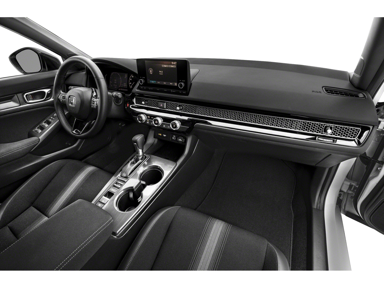 Recent Arrival! 2023 Honda Civic Sport 2.0L I4 DOHC 16V i-VTEC CVT FWD Cloth, 4-Wheel Disc Brakes, 8 Speakers, ABS brakes, Adaptive Cruise Control: Adaptive Cruise Control (ACC) with Low-Speed Follow, Air Conditioning, Alloy wheels, AM/FM radio, Apple CarPlay/Android Auto, Auto High-beam Headlights, Automatic temperature control, Brake assist, Bumpers: body-color, Cloth Seat Trim, Delay-off headlights, Driver door bin, Driver vanity mirror, Dual front impact airbags, Dual front side impact airbags, Electronic Stability Control, Emergency communication system: HondaLink, Exterior Parking Camera Rear, Four wheel independent suspension, Front anti-roll bar, Front Bucket Seats, Front Center Armrest, Front reading lights, Fully automatic headlights, Illuminated entry, Knee airbag, Leather Shift Knob, Leather steering wheel, Low tire pressure warning, Occupant sensing airbag, Outside temperature display, Overhead airbag, Panic alarm, Passenger door bin, Passenger vanity mirror, Power door mirrors, Power steering, Power windows, Radio data system, Radio: 180-Watt Audio System w/8 Speakers, Rear anti-roll bar, Rear side impact airbag, Rear window defroster, Remote keyless entry, Security system, Speed control, Speed-sensing steering, Steering wheel mounted audio controls, Tachometer, Telescoping steering wheel, Tilt steering wheel, Traction control, Trip computer, and Wheels: 18 Gloss Black Alloy.30/37 City/Highway MPG
