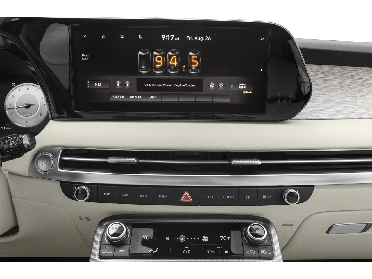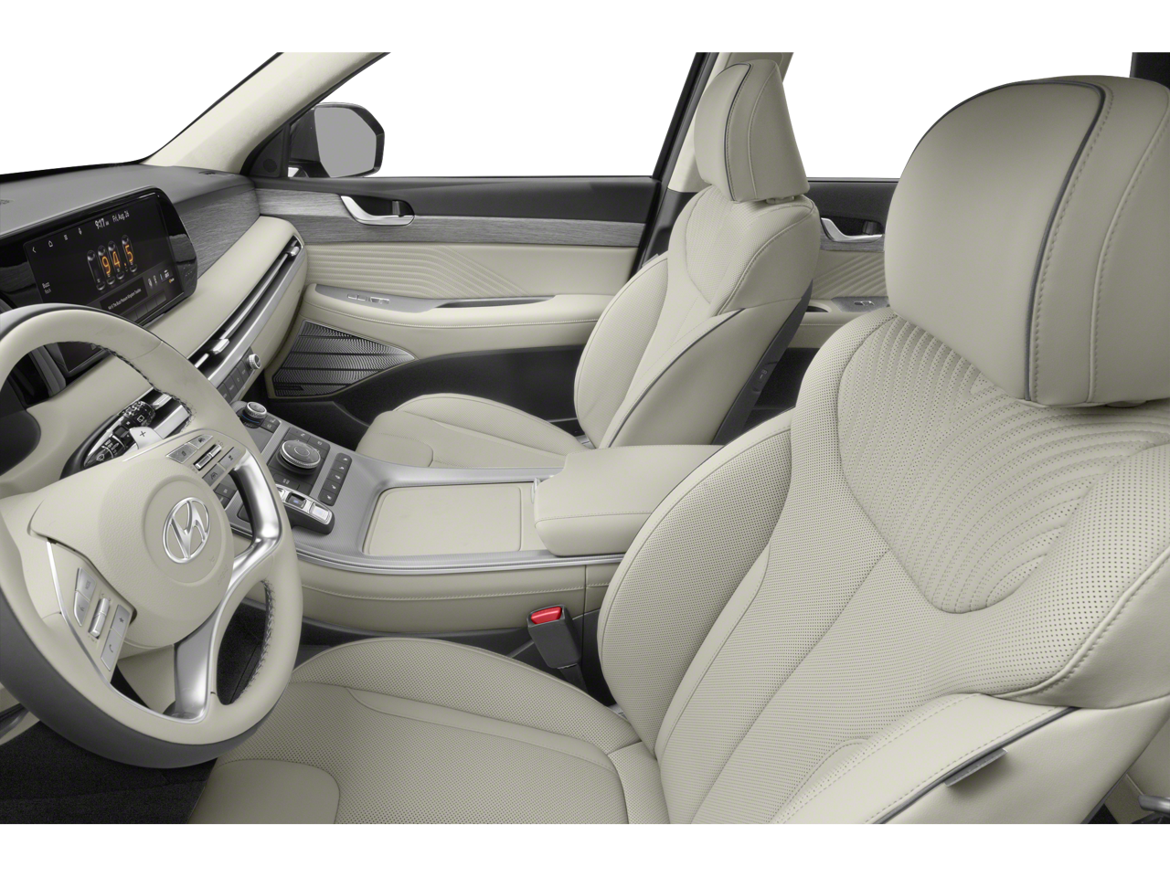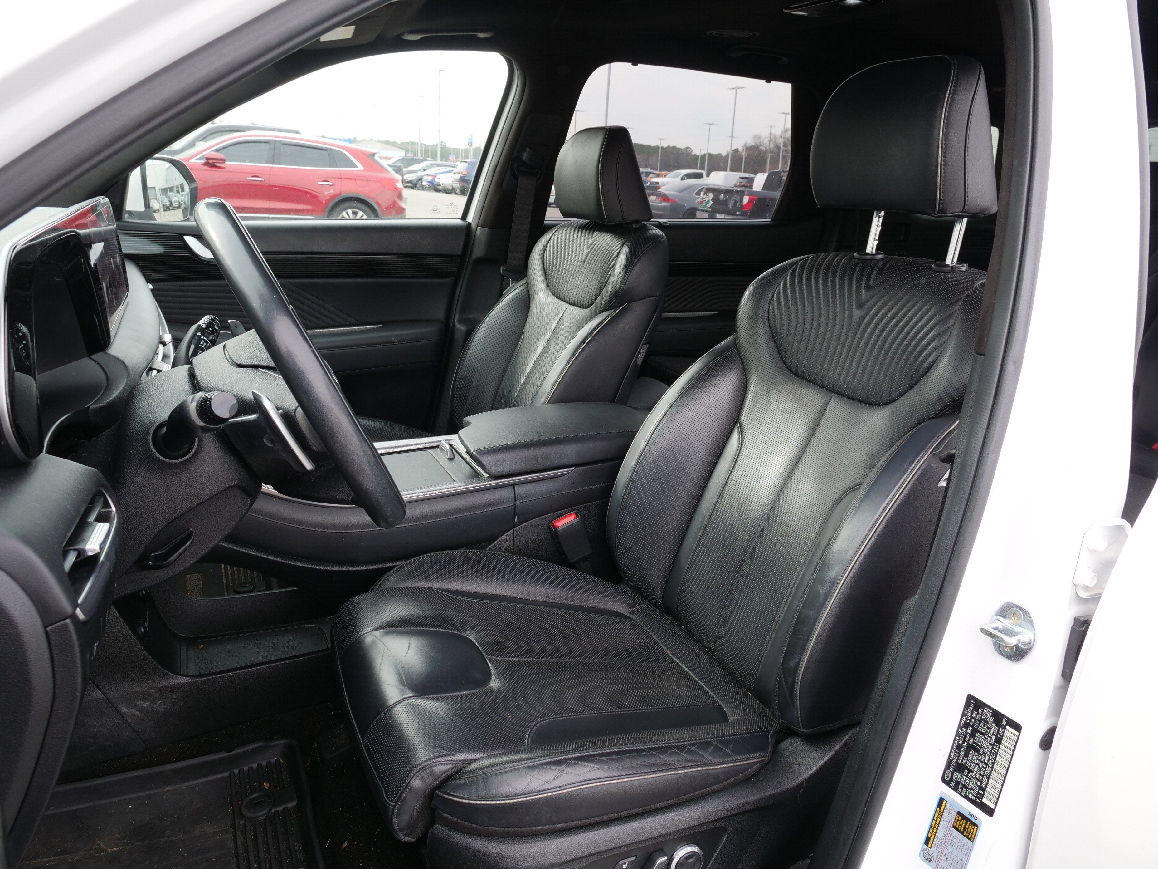 Hyper White 2023 Hyundai Palisade Calligraphy V6 8-Speed Automatic with SHIFTRONIC AWD Cargo Package (Cargo Blocks, Cargo Net, and Cargo Tray), Option Group 01, 12 Speakers, 3.648 Axle Ratio, 3rd row seats: split-bench, 4-Wheel Disc Brakes, ABS brakes, Air Conditioning, Alloy wheels, AM/FM radio: SiriusXM, Apple CarPlay & Android Auto, Auto High-beam Headlights, Auto-dimming door mirrors, Auto-dimming Rear-View mirror, Auto-leveling suspension, Automatic temperature control, Brake assist, Bumpers: body-color, Cargo Cover/Screen, Carpeted Floor Mats, Compass, Delay-off headlights, Driver door bin, Driver vanity mirror, Dual front impact airbags, Dual front side impact airbags, Electronic Stability Control, Emergency communication system: Blue Link Connected Car Service (3-year complimentary subscription), Exterior Parking Camera Rear, First Aid Kit, Four wheel independent suspension, Front anti-roll bar, Front Bucket Seats, Front Center Armrest, Front dual zone A/C, Front reading lights, Fully automatic headlights, Garage door transmitter: HomeLink, harman/kardon® Speakers, Heads-Up Display, Heated & Ventilated Front Bucket Seats, Heated door mirrors, Heated front seats, Heated rear seats, Heated steering wheel, Illuminated entry, Knee airbag, Low tire pressure warning, Memory seat, Navigation System, Occupant sensing airbag, Outside temperature display, Overhead airbag, Overhead console, Panic alarm, Passenger door bin, Passenger vanity mirror, Power door mirrors, Power driver seat, Power Liftgate, Power moonroof, Power passenger seat, Power steering, Power windows, Premium Nappa Leather Seat Trim, Radio data system, Radio: AM/FM/MP3 Premium Audio System, Rain sensing wipers, Rear air conditioning, Rear anti-roll bar, Rear audio controls, Rear reading lights, Rear side impact airbag, Rear window defroster, Rear window wiper, Reclining 3rd row seat, Remote keyless entry, Security system, Speed control, Speed-sensing steering, Split folding rear seat, Spoiler, Steering wheel mounted audio controls, Tachometer, Telescoping steering wheel, Tilt steering wheel, Traction control, Trip computer, Turn signal indicator mirrors, Variably intermittent wipers, Ventilated front seats, Ventilated rear seats, Wheel Locks, and Wheels: 20 x 7.5J Calligraphy Exclusive Alloy.