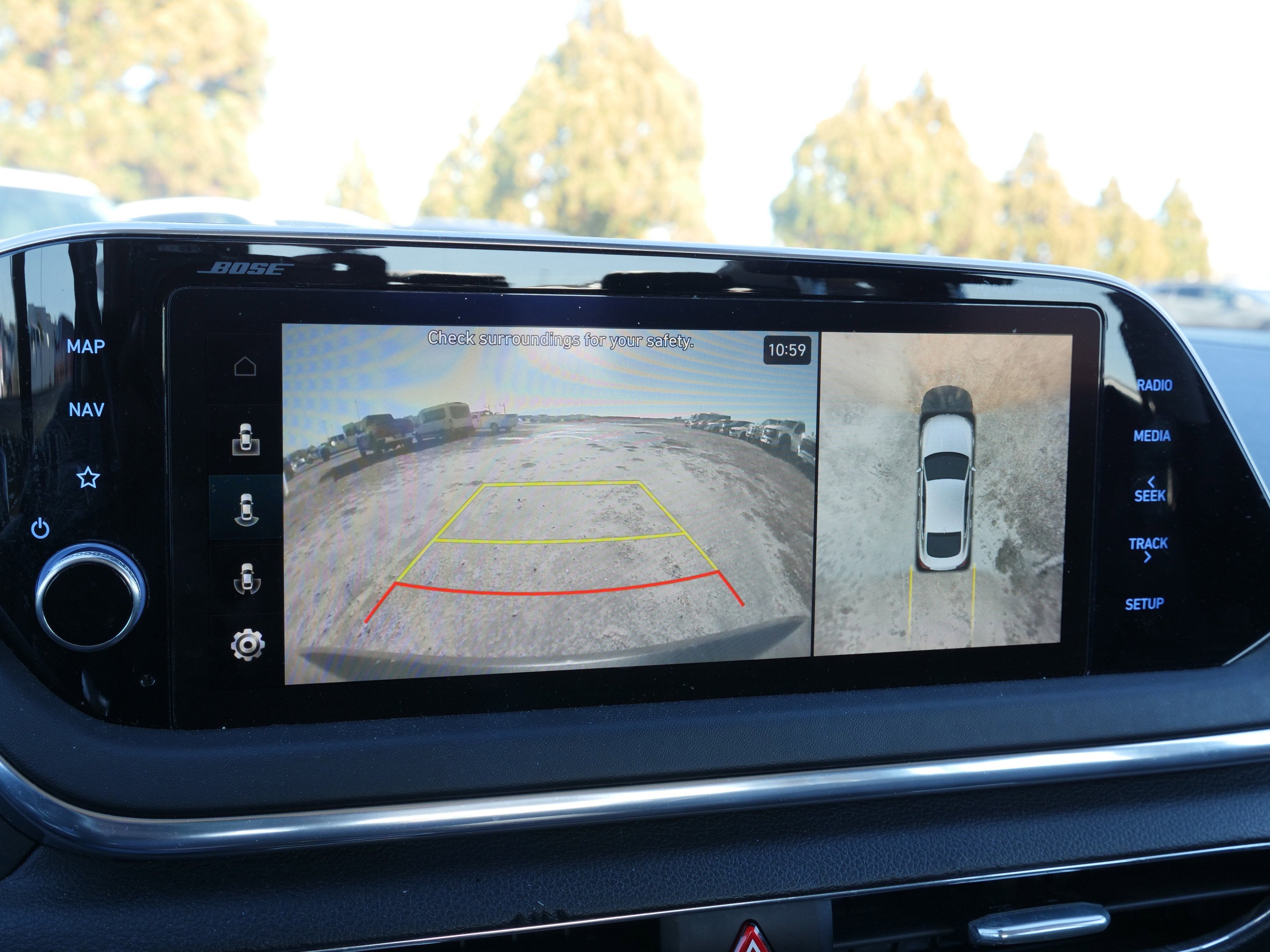 - Radio: AM/FM/MP3/HD/SiriusXM Display Audio w/Nav -inc: 10.25" color touchscreen, Bose premium audio w/12 speakers (1 center channel, 2 dash, 2 front tweeters, 4 door mounted, 2 rear mounted speakers plus 1 rear mounted subwoofer), dynamic voice recognition, integrated Bluetooth®, Blue Link connected car system, Apple CarPlay, Android Auto, USB, diversity antenna for navigation and HERE HD traffic