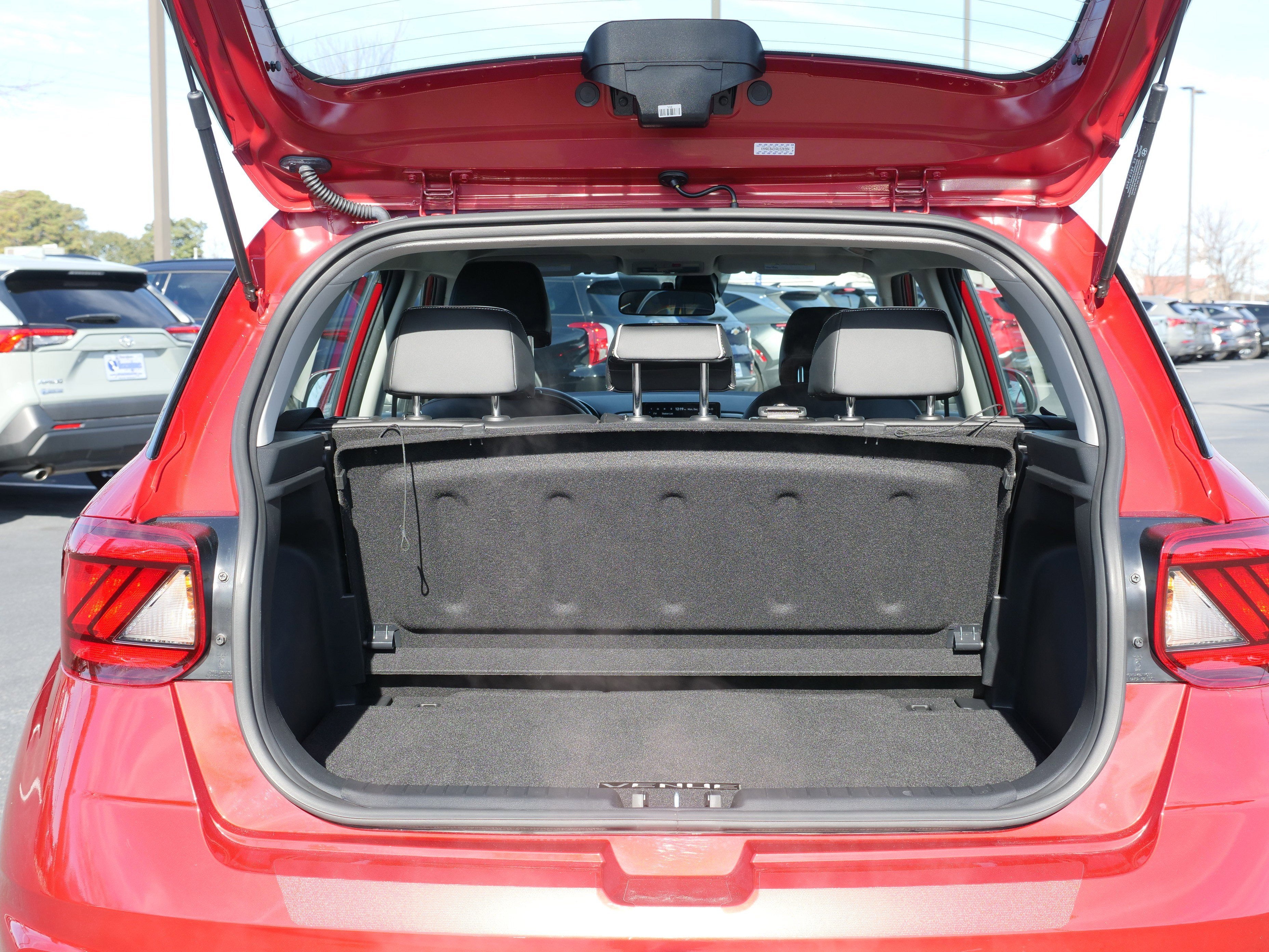Ultimate Red 2024 Hyundai Venue Limited Option Group 01, 4-Wheel Disc Brakes, 6 Speakers, 6.483 Axle Ratio, 6.5J x 17 Alloy Wheels, ABS brakes, Air Conditioning, Alloy wheels, AM/FM radio: SiriusXM, Apple CarPlay & Android Auto, Auto High-beam Headlights, Automatic temperature control, Brake assist, Bumpers: body-color, Cargo Net, Cargo Tray, Carpeted Floor Mats, Cloth & Leatherette Seat Trim, Delay-off headlights, Driver door bin, Driver vanity mirror, Dual front impact airbags, Dual front side impact airbags, Electronic Stability Control, Emergency communication system, First Aid Kit, Front anti-roll bar, Front Bucket Seats, Front Center Armrest, Front reading lights, Front wheel independent suspension, Fully automatic headlights, Heated door mirrors, Heated Front Bucket Seats, Heated front seats, Illuminated entry, Leather Shift Knob, Leather steering wheel, Low tire pressure warning, Navigation System, Occupant sensing airbag, Outside temperature display, Overhead airbag, Overhead console, Panic alarm, Passenger door bin, Passenger vanity mirror, Power door mirrors, Power steering, Power windows, Radio: AM/FM/HD/SiriusXM w/Navigation System, Rear Bumper Applique, Rear Seat Cup Holder, Rear window defroster, Rear window wiper, Remote keyless entry, Roof rack: rails only, Security system, Speed control, Speed-sensing steering, Split folding rear seat, Spoiler, Steering wheel mounted audio controls, Tachometer, Telescoping steering wheel, Tilt steering wheel, Traction control, Trip computer, and Variably intermittent wipers.29/33 City/Highway MPG Odometer is 2585 miles below market average!