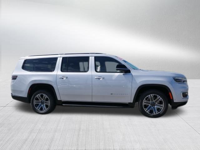Silver Zynith 2024 Jeep Wagoneer L Series II 3.0L I6 8-Speed Automatic RWD Quick Order Package 25J, 10 Speakers, 3.55 Rear Axle Ratio, 3rd row seats: bench, 4-Wheel Disc Brakes, ABS brakes, Adjustable pedals, Air Conditioning, Alloy wheels, AM/FM radio: SiriusXM with 360L, Anti-whiplash front head restraints, Apple CarPlay/Android Auto, Audio memory, Auto-dimming door mirrors, Auto-dimming Rear-View mirror, Auto-leveling suspension, Automatic temperature control, Brake assist, Bumpers: body-color, Compass, Delay-off headlights, Driver door bin, Driver vanity mirror, Driver's Seat Mounted Armrest, Dual front impact airbags, Dual front side impact airbags, Electronic Stability Control, Emergency communication system: Wagoneer Connect, Exterior Parking Camera Rear, Four wheel independent suspension, Front anti-roll bar, Front Bucket Seats, Front Center Armrest w/Storage, Front dual zone A/C, Front fog lights, Front reading lights, Fully automatic headlights, Garage door transmitter, Genuine wood console insert, Genuine wood dashboard insert, Genuine wood door panel insert, Heated door mirrors, Heated front seats, Heated steering wheel, Illuminated entry, Knee airbag, Leather Trimmed Bucket Seats, Low tire pressure warning, Memory seat, Navigation System, Normal Duty Suspension, Occupant sensing airbag, Outside temperature display, Overhead airbag, Overhead console, Panic alarm, Passenger door bin, Passenger seat mounted armrest, Passenger vanity mirror, Pedal memory, Power adjustable front head restraints, Power door mirrors, Power driver seat, Power Liftgate, Power passenger seat, Power steering, Power windows, Radio data system, Radio: Uconnect 5 Nav w/10.1 Display, Rain sensing wipers, Rear air conditioning, Rear anti-roll bar, Rear reading lights, Rear seat center armrest, Rear window defroster, Rear window wiper, Reclining 3rd row seat, Remote keyless entry, Security system, Speed control, Speed-sensing steering, Speed-Sensitive Wipers, Split folding rear seat, Steering wheel memory, Steering wheel mounted audio controls, Tachometer, Telescoping steering wheel, Tilt steering wheel, Traction control, Trip computer, Turn signal indicator mirrors, Variably intermittent wipers, Ventilated front seats, Voltmeter, and Wheels: 20 x 9.0 Premium 2 Aluminum.Odometer is 736 miles below market average!Deacon Jones has been PROUDLY Providing only the BEST Pre-Owned Vehicles from Goldsboro to Eastern North Carolina Communities Including Raleigh, Greenville, Wilson, Wilmington and Beyond for over 40 YEARS!