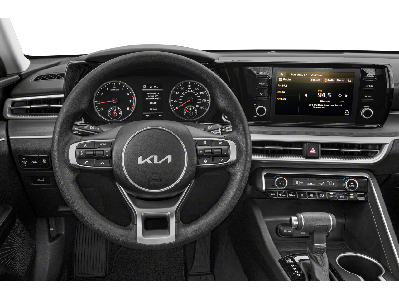 Glacial White Pearl 2024 Kia K5 LXS FWD 8-Speed Automatic 1.6L I4 DGI Turbocharged DOHC 16V LEV3-ULEV70 180hp 4-Wheel Disc Brakes, 6 Speakers, ABS brakes, Air Conditioning, Alloy wheels, AM/FM radio, Auto High-beam Headlights, Automatic temperature control, Brake assist, Bumpers: body-color, Cargo Mat, Carpeted Floor Mats, Cloth Seat Trim, Delay-off headlights, Driver door bin, Driver vanity mirror, Dual front impact airbags, Dual front side impact airbags, Electronic Stability Control, Four wheel independent suspension, Front anti-roll bar, Front Bucket Seats, Front Center Armrest, Front dual zone A/C, Front reading lights, Fully automatic headlights, Heated door mirrors, Illuminated entry, Knee airbag, Low tire pressure warning, Occupant sensing airbag, Outside temperature display, Overhead airbag, Overhead console, Panic alarm, Passenger door bin, Passenger vanity mirror, Power door mirrors, Power steering, Power windows, Radio data system, Radio: AM/FM/MP3 Audio System, Rear anti-roll bar, Rear seat center armrest, Rear side impact airbag, Rear window defroster, Remote keyless entry, Security system, Speed control, Speed-sensing steering, Split folding rear seat, Steering wheel mounted audio controls, Tachometer, Telescoping steering wheel, Tilt steering wheel, Traction control, Trip computer, Variably intermittent wipers, and Wheels: 16 Gray Alloy.Recent Arrival! 27/37 City/Highway MPG