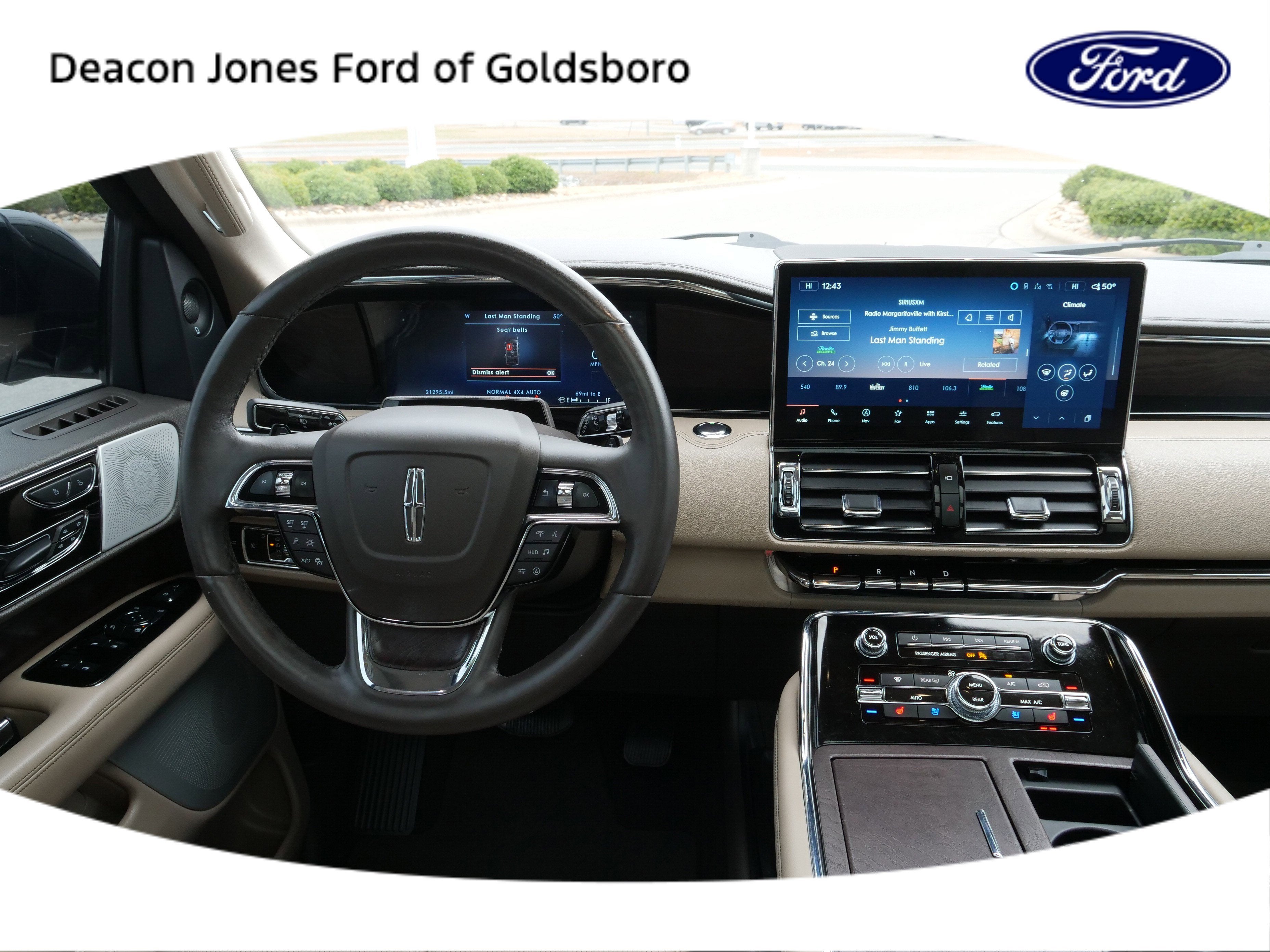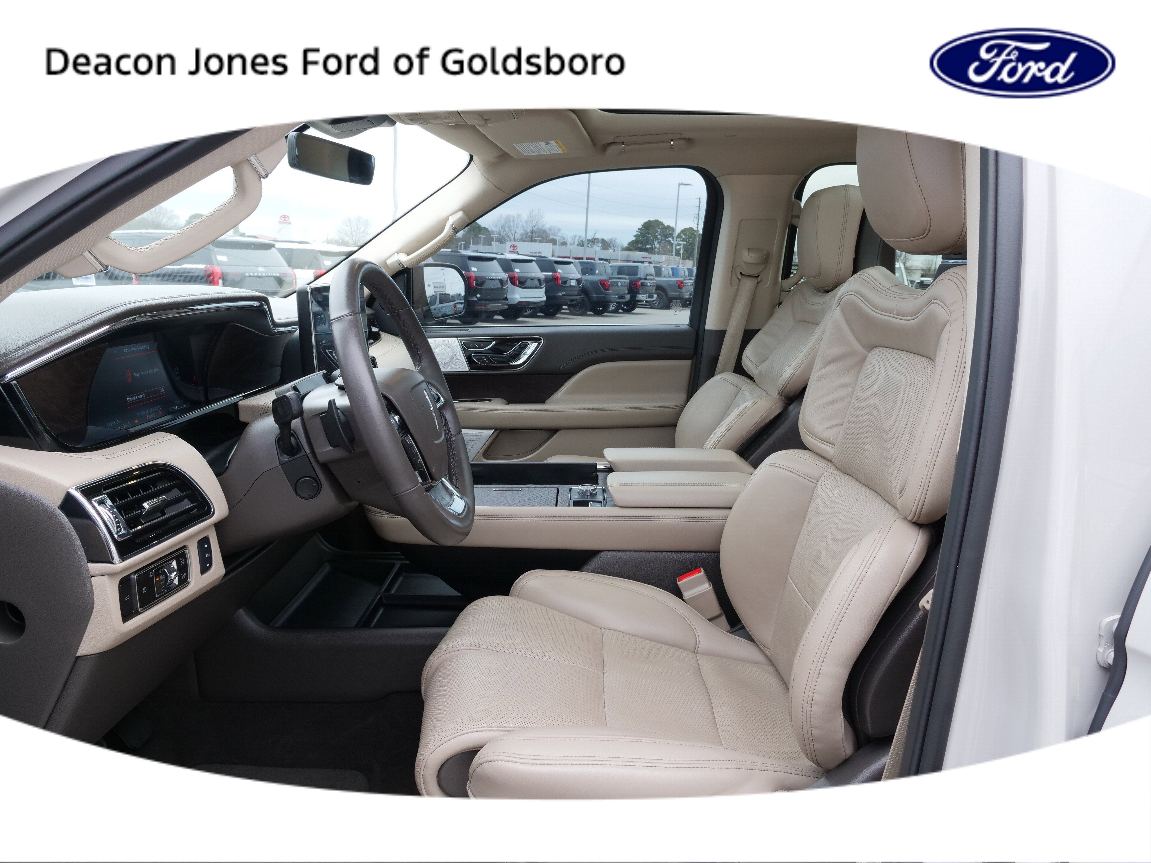 Ceramic Pearl Metallic Tri-Coat 2024 Lincoln Navigator L Reserve 4WD V6 10-Speed Automatic Equipment Group 201A Reserve I, Luxury Package (Illuminated 1st & 2nd Row Seat Belts, Lincoln Lit Star in Grille, Perfect Position Seats (30-Way) w/Active Motion, and Radio: Revel Ultima 3D Audio System w/28 Speakers), 14 Speakers, 3.73 Axle Ratio, 3rd row seats: split-bench, 4-Wheel Disc Brakes, ABS brakes, Adaptive suspension, Adjustable pedals, Air Conditioning, Alloy wheels, AM/FM radio: SiriusXM with 360L, Apple CarPlay/Android Auto, Audio memory, Auto High-beam Headlights, Auto Start-Stop Technology, Auto tilt-away steering wheel, Auto-dimming door mirrors, Auto-dimming Rear-View mirror, Auto-leveling suspension, Automatic temperature control, Bodyside moldings, Brake assist, Bumpers: body-color, Compass, Delay-off headlights, Driver door bin, Driver vanity mirror, Driver's Seat Mounted Armrest, Dual front impact airbags, Dual front side impact airbags, Electronic Stability Control, Emergency communication system: 911 Assist, Exterior Parking Camera Rear, Four wheel independent suspension, Front anti-roll bar, Front Bucket Seats, Front dual zone A/C, Front fog lights, Front License Plate Bracket, Front reading lights, Fully automatic headlights, Garage door transmitter, Genuine wood dashboard insert, Genuine wood door panel insert, Head restraints memory, Heads-Up Display, Heated door mirrors, Heated front seats, Heated rear seats, Heated steering wheel, HVAC memory, Illuminated entry, Lane Departure Warning System, Leather steering wheel, Low tire pressure warning, Memory seat, Navigation system: Connected Navigation (1-year trial), Occupant sensing airbag, Outside temperature display, Overhead airbag, Overhead console, Panic alarm, Passenger door bin, Passenger seat mounted armrest, Passenger vanity mirror, Pedal memory, Power adjustable rear head restraints, Power door mirrors, Power driver seat, Power Liftgate, Power moonroof: Panoramic Vista Roof, Power passenger seat, Power steering, Power windows, Prem Lthr Auto Htd/Ventiltd Perfect Position Seats, Radio data system, Radio: Revel Audio System w/Satelllite/AM/FM/HD, Rain sensing wipers, Rear air conditioning, Rear anti-roll bar, Rear audio controls, Rear reading lights, Rear window defroster, Rear window wiper, Reclining 3rd row seat, Remote keyless entry, Security system, SiriusXM w/360L, Speed control, Speed-sensing steering, Speed-Sensitive Wipers, Split folding rear seat, Spoiler, Steering wheel memory, Steering wheel mounted audio controls, SYNC 4 Communications & Entertainment System, Tachometer, Telescoping steering wheel, Tilt steering wheel, Traction control, Trip computer, Turn signal indicator mirrors, Variably intermittent wipers, Ventilated front seats, Ventilated rear seats, Voice-Activated Touchscreen Navigation System, and Wheels: 22 Bright Machined Aluminum.16/22 City/Highway MPG