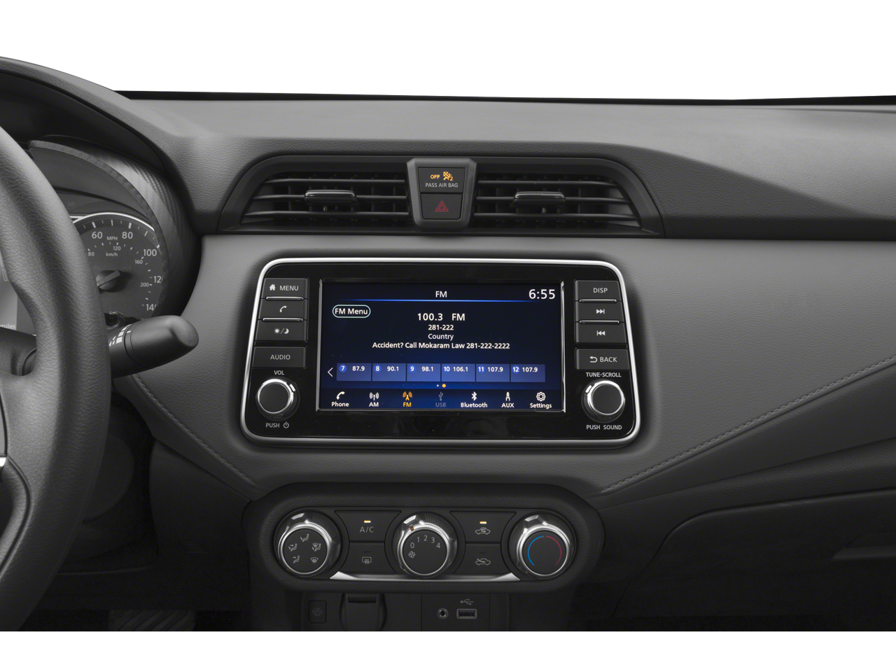 - Radio: AM/FM Audio System -inc: RDS, MP3, aux-in, 7" Advanced Drive-Assist display, NissanConnect featuring Apple CarPlay and Android Auto, Bluetooth® hands-free phone system, streaming audio via Bluetooth®, interface for iPod and other compatible devices, hands-free text messaging assistant, Siri Eyes Free/Google Assistant voice recognition, 4 speakers and 3 USB ports (2-charge only)