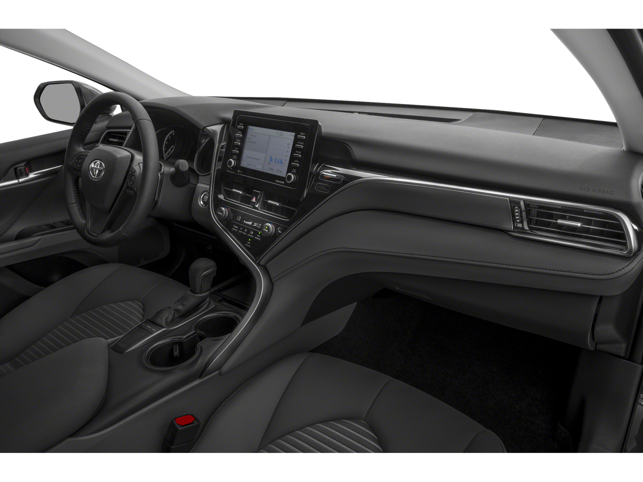 Silver / Black 2024 Toyota Camry SE FWD 8-Speed Automatic 2.5L I4 DOHC 16V 18 x 8J Alloy Wheels, 4-Wheel Disc Brakes, 6 Speakers, ABS brakes, Air Conditioning, Alloy wheels, AM/FM radio: SiriusXM, Apple CarPlay/Android Auto, Auto High-beam Headlights, Automatic temperature control, Brake assist, Bumpers: body-color, Delay-off headlights, Driver door bin, Driver vanity mirror, Dual front impact airbags, Dual front side impact airbags, Electronic Stability Control, Emergency communication system: Safety Connect (1-year trial), Exterior Parking Camera Rear, Four wheel independent suspension, Front anti-roll bar, Front Bucket Seats, Front Center Armrest, Front dual zone A/C, Front reading lights, Fully automatic headlights, Heated door mirrors, Illuminated entry, Knee airbag, Leather steering wheel, Low tire pressure warning, Occupant sensing airbag, Outside temperature display, Overhead airbag, Overhead console, Panic alarm, Passenger door bin, Passenger vanity mirror, Power door mirrors, Power driver seat, Power steering, Power windows, Radio data system, Radio: Audio, Rear anti-roll bar, Rear seat center armrest, Rear side impact airbag, Rear window defroster, Remote keyless entry, Security system, Speed control, Speed-sensing steering, Split folding rear seat, Spoiler, Sport SofTex Seat Trim w/Fabric Inserts, Steering wheel mounted audio controls, Tachometer, Telescoping steering wheel, Tilt steering wheel, Traction control, Trip computer, Turn signal indicator mirrors, and Variably intermittent wipers.Odometer is 28137 miles below market average! 28/39 City/Highway MPG