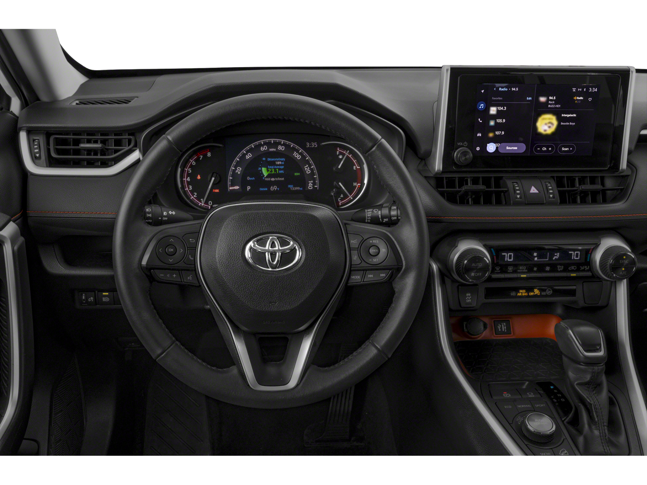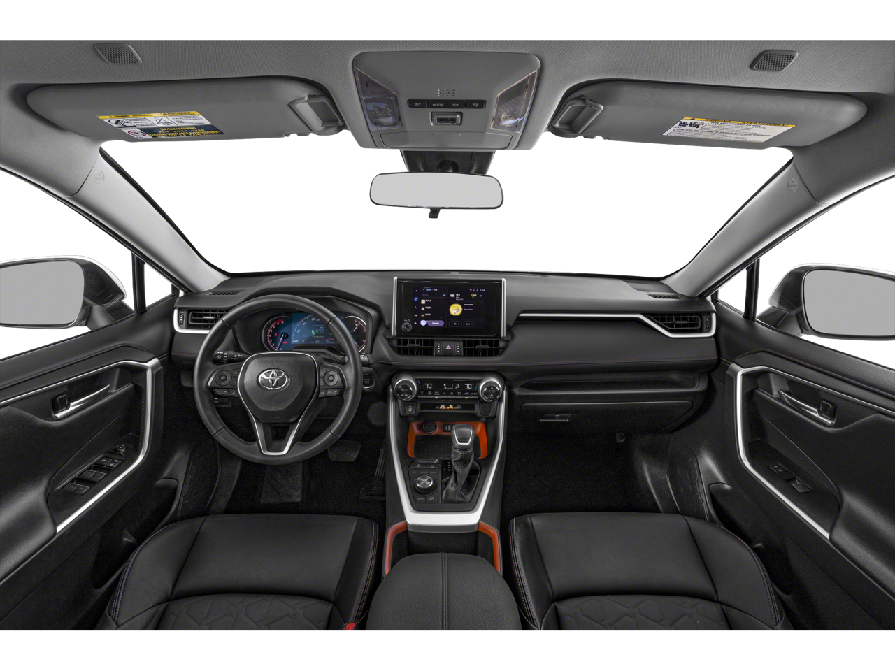 Black 2024 Toyota RAV4 Adventure 2.5L 4-Cylinder DOHC Dual VVT-i 8-Speed Automatic AWD AWD, 19 Split 5-Spoke Alloy Wheels, 4-Wheel Disc Brakes, 6 Speakers, ABS brakes, Air Conditioning, Alloy wheels, AM/FM radio: SiriusXM, Auto High-beam Headlights, Automatic temperature control, Axle Ratio: 3.177, Brake assist, Bumpers: body-color, Delay-off headlights, Driver door bin, Driver vanity mirror, Dual front impact airbags, Dual front side impact airbags, Electronic Stability Control, Emergency communication system: Safety Connect (10-year trial), Exterior Parking Camera Rear, Four wheel independent suspension, Front anti-roll bar, Front Bucket Seats, Front Center Armrest, Front dual zone A/C, Front fog lights, Front reading lights, Fully automatic headlights, Heated door mirrors, Illuminated entry, Knee airbag, Leather Shift Knob, Leather steering wheel, Low tire pressure warning, Occupant sensing airbag, Outside temperature display, Overhead airbag, Overhead console, Panic alarm, Passenger door bin, Passenger vanity mirror, Power door mirrors, Power driver seat, Power steering, Power windows, Radio data system, Radio: AM/FM/XM Audio System, Rear anti-roll bar, Rear seat center armrest, Rear window defroster, Rear window wiper, Remote keyless entry, Security system, SofTex Seat Trim, Speed control, Speed-sensing steering, Split folding rear seat, Spoiler, Steering wheel mounted audio controls, Tachometer, Telescoping steering wheel, Tilt steering wheel, Traction control, Trip computer, Turn signal indicator mirrors, and Variably intermittent wipers.25/33 City/Highway MPG
